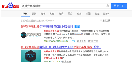 步骤一:在百度搜索“夜神安卓模拟器”平台,找到指定得官方网站进入;
