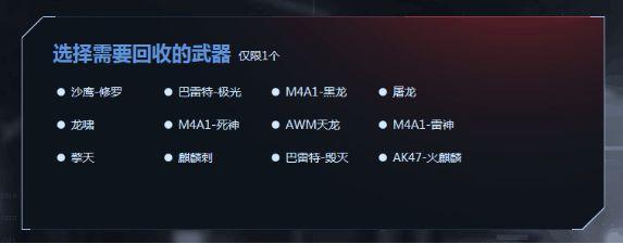 而这次的换购,有一个武器限制。即你可以拿出来换的(也就是说你自己本身就有的武器)是没有任何限制的,你可以拿雷神黑龙换,也可以拿千变死神换,只要是永久的都可以。但是你可以换到的武器,则只能是2015年1月以前出现的。比如小编的M4互换卡,只能用雷神换到黑龙黑骑士玫瑰,但是无法换到15年以后出现的死神千变。