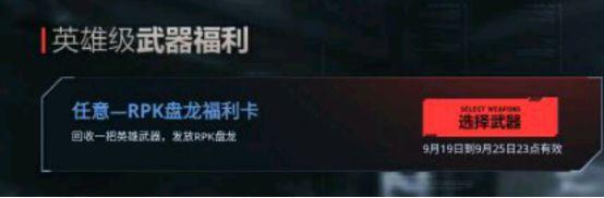 【该卡功能:使用仓库内任意永久英雄级武器(不含角色)交换,可以获得RPK-盘龙】