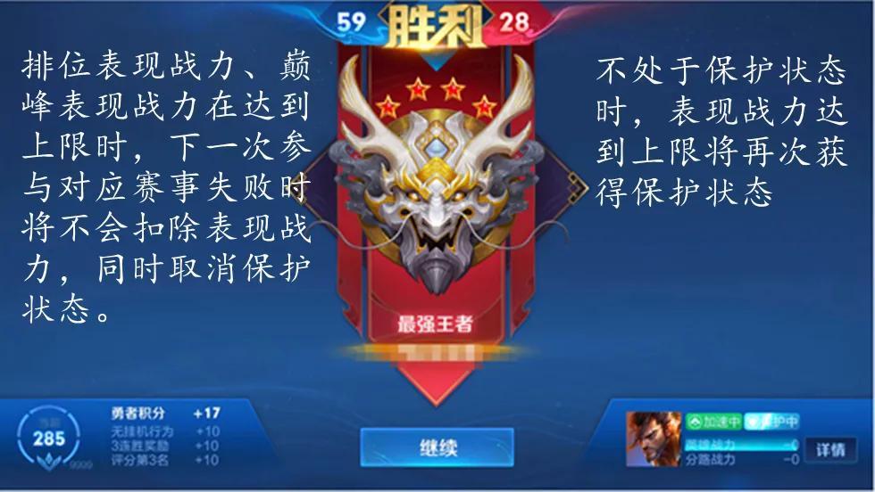 新赛季多了一个战力保护,这样可以避免有些人怕掉战力而一直不敢使用某个高战力英雄。