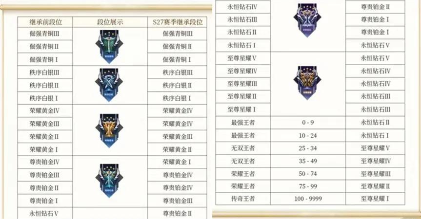 王者荣耀新赛季继承段位表(王者荣耀S28段位继承公布)