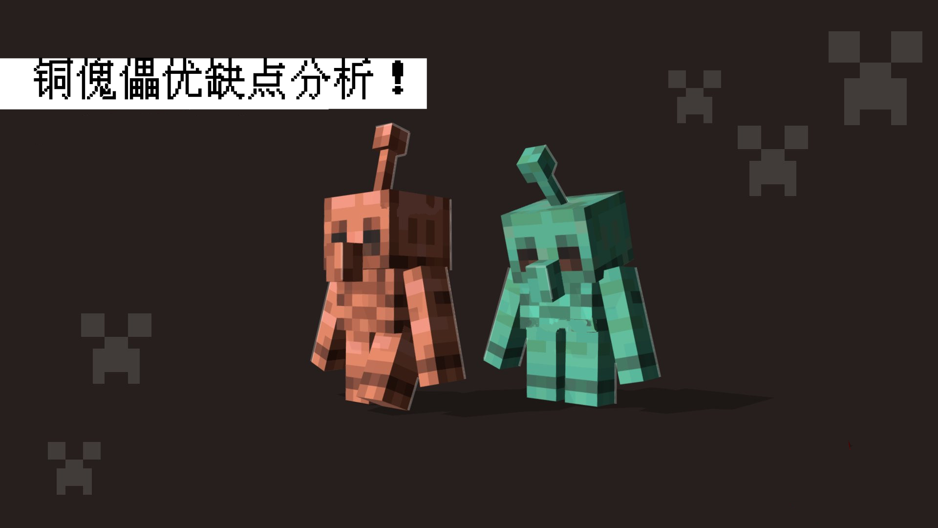 优点:①铜傀儡可以自己造,获取会非常容易;②进一步增加了铜的用处;③可以用来自动化红石装置;④可以当一个移动的避雷针用;⑤世界观的部分,铜傀儡可以完善目前《我的世界》铁傀儡缺失的世界观的部分,将mc的机器人科技水平提升一个台阶。对于Minecraft游戏背景完善的意义,可能较另外两种生物要更大。