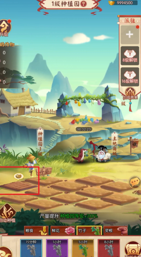 土地开垦完毕后,点击已有的种