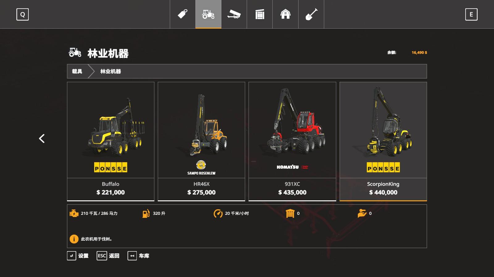 玩家如果遇到暂缺工具的情况,可以通过商店租赁的方式来缓解这方面的压力,并且通过完成合约后的报酬来还上借款。在商店中,有着众多的功能不同的品牌载具和挂载工具,而每种载具和工具也有着不同级别的区别,越贵价格的用具往往功能和工作效率也越强越高。但是游戏前期,我们由于在资金方面比较缺乏,肯定没法选择高效但昂贵的工具,所以我们前期的农场发展思路就是在满足自己农场自给自足的前提下,逐渐接受一些简单且距离稍微近的合约,慢慢攒出创业的第一桶金,再扩建自己的农场,进行养殖或者伐木等工作,进而获取更多资金,接受更为复杂的合约,以此来实现良性循环,逐渐壮大自己的农场。