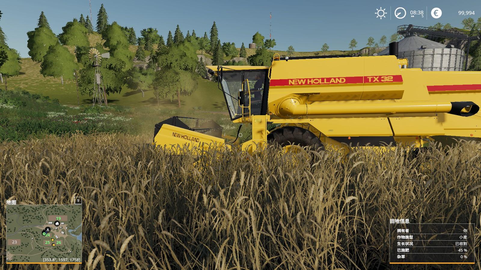 开始的教学环节就展现了本作稍显复杂的操作方式和游戏内容,但这也体现出这款游戏在拟真度方面所下的功夫。整个教学流程共分为6个部分,包括农耕、作物保护、施肥、土壤管理、打包工作和林业相关,每一个部分都十分详细地告诉玩家该如何去了解和执行工作。从开始启动拖拉机连接配重,到工作车运行至工作单位,每一步都是紧密相连,少做了一个环节,都会导致后续工作的停摆,玩家只须且只能严格按照生产工作的步骤,才能有效率地完成任务,并进一步做到产量最大化,不然都会是浪费时间和物力。而游戏的终极目的就是把玩家生产和收获的农作物、木材、牲畜出售,赚取大量金钱。