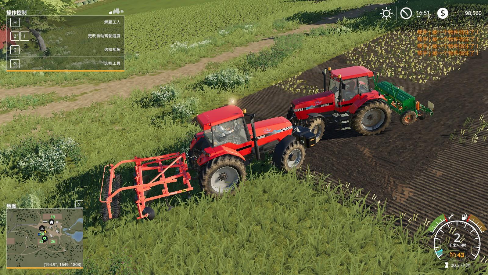 在玩家驾驶操作农业生产车辆时,可以通过鼠标滚轮来放大缩小场景,从而细致地观察车辆行驶情况,避免轮胎不小心碾过田地破坏作物。在游戏中,我们不仅可以仔细了解土地耕作的情况,也可以了解各类农业工具的具体的工作模式,可以说很是还原现代化农业的生产场景了。如果工作较为繁多,玩家也可以花钱雇佣工人来继续工作。虽然AI驾驶车辆和使用工具比较循规蹈矩和整齐,但是还是有着不小的缺点:一块土地上如果有两位工人来负责交替生产工作,那么有可能会出现两辆车互相顶撞的局面,导致生产中断,而这时只能通过玩家亲自操作来解决;但如果只有一个工人工作,则会出现效率低下的情况,如何取舍就要玩家自己来做决定了。