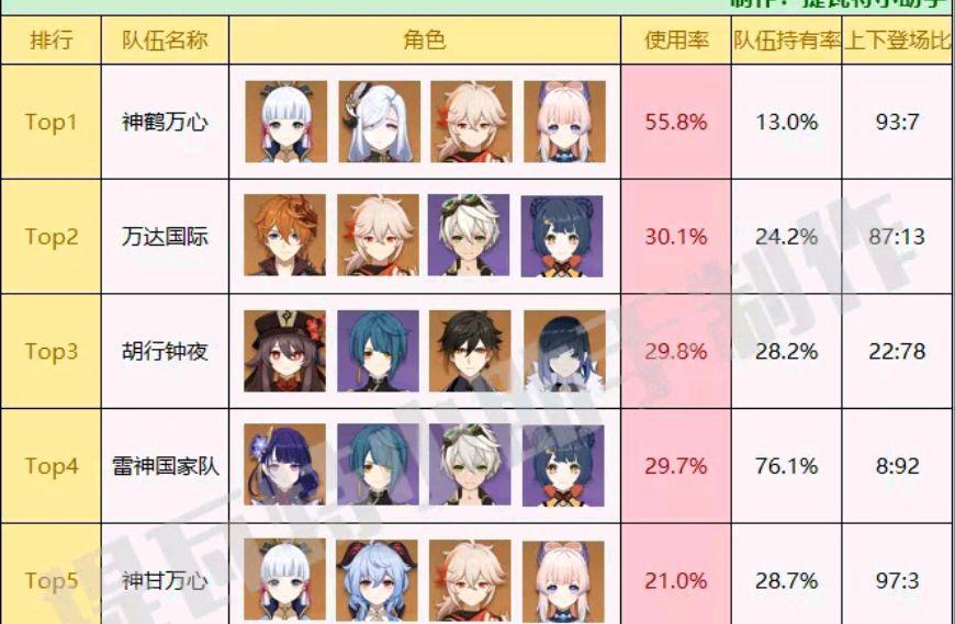 一、深渊队伍使用率排行