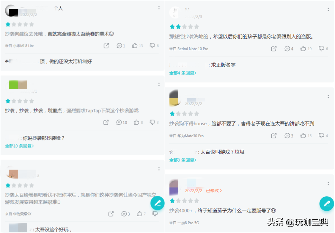 游戏本身没问题,但因玩法和太吾中抓蛐蛐的玩法极为类似而遭到了不少玩家的差评。有玩家说贴图、数据、名字一模一样的问题,因为太久没玩这个我还真记不清了,不过玩法的确是相差无几。