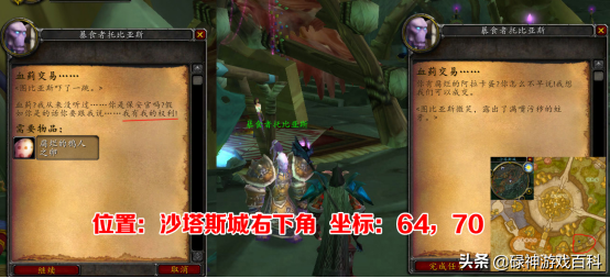 开出腐烂的鸦人之卵后,前往沙塔斯城的右下角找到暴食者托比亚斯,坐标64,70。这货拿到臭蛋后就开始吸食,周围的NPC全都熏吐了。