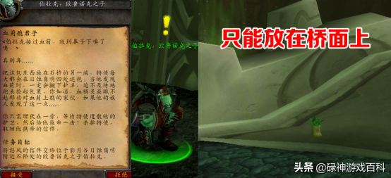 拿到血蓟后,伯拉克要求玩家将它放在桥的另一端,然后等血精灵特使遣散护卫上前拾取时击杀他,获得怒风的信件。需要注意的是,并不是任何地点都能放血蓟,只能放在桥面上。