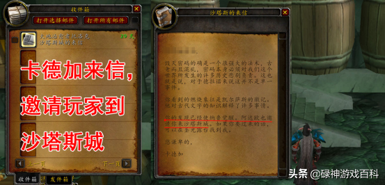 打完没后续了?不急,就近找个邮箱收信,卡德加在信里邀请玩家到沙塔斯一聚。