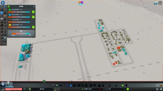 5.进入游戏时,整个城市应该是静止的,游戏主界面会有红色边框。在一个阶段建设完成后,按左下角的暂停按钮,或者按下空格(默认键位设置),城市发展变为动态状态,可以看到刚才规划为住宅用地的区域,一座座独栋住宅拔地而起,成就感油然而生