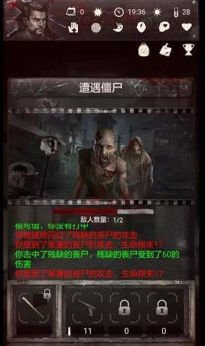 文字类的纯生存游戏,同上面的守望猎手差不多,只不过背景从荒郊野外,换到了僵尸围城。