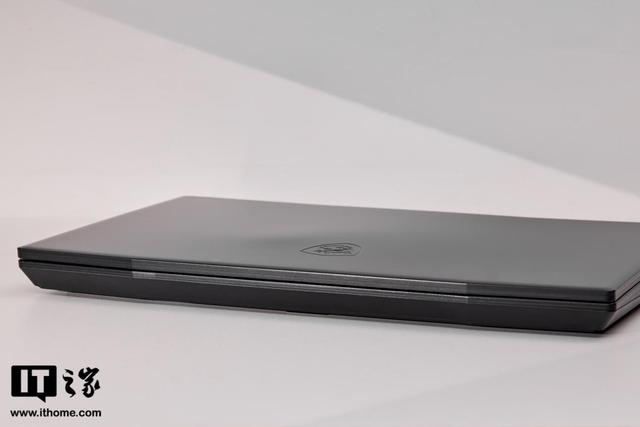 四面皆由工程塑料材质组成,相比金属优势是不易沾指纹,A 面是一个微星经典的龙盾蚀刻 Logo。
