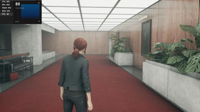 在《控制》中,帧数可以达到平均 80 帧,畅玩不成问题,如果想体验一下光追的话也是可以的,开启中等光追后还是能达到平均 58 帧,流畅游玩也不在话下。