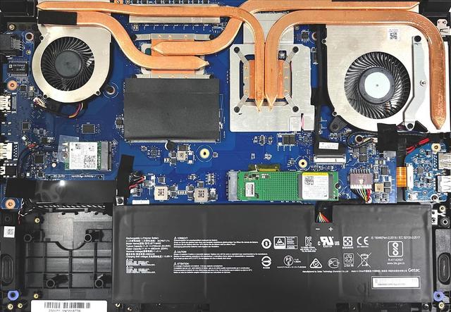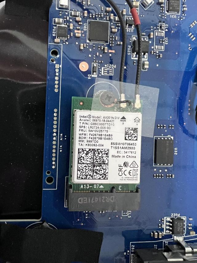 电池也是中规中矩,容量为 4700mAh,对于这种游戏本来说,也基本足够了。网卡是英特尔的 AX201NGW, 支持最新的 WiFi6 协议,是一块非常新的高性能无线网卡。虽然性价比高,但网卡没有缩水,这个要好评。