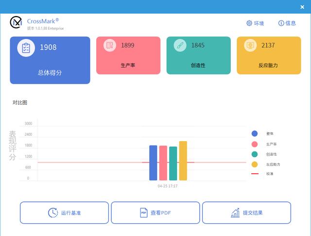 在另外一款全新的,代表综合办公性能的测试软件《CrossMark》中,武士 66 获得了 1908,可以满足办公需求。