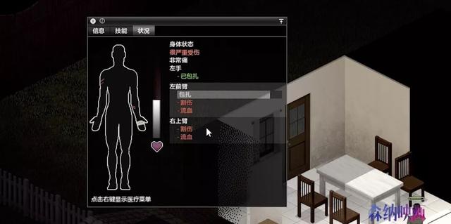 遇上锁门的房屋,可以打碎窗户翻进去,而且还得清除玻璃碎片,不然直接翻进去还有几率被割伤,被丧尸攻击或者被咬了,需要消毒,缠绷带。甚至有几率被丧尸感染病毒,基本上几天之后会死亡尸变,不过这个可以设置取消尸变,不然游戏难度会非常大。