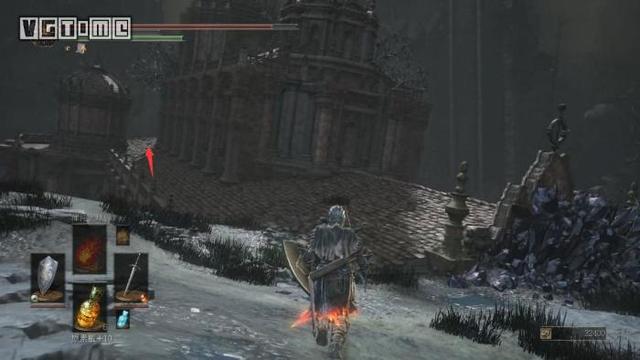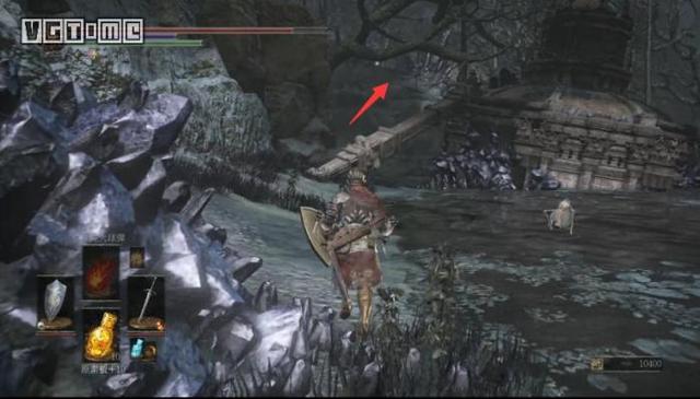 往远处公墓入口的地方前面的桥,右转下去可以拿到龙头大盾。