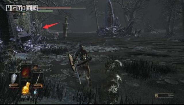 9.同样还是这条石头路,从旁边跳回沼泽,途中的平台上可以获得哈维尔戒指+3。