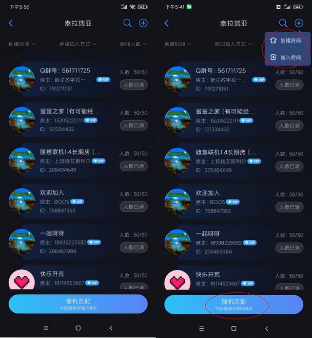 在游戏大厅中可以进行随机匹配,或者创建一个自己的房间方便和伙伴们开黑。