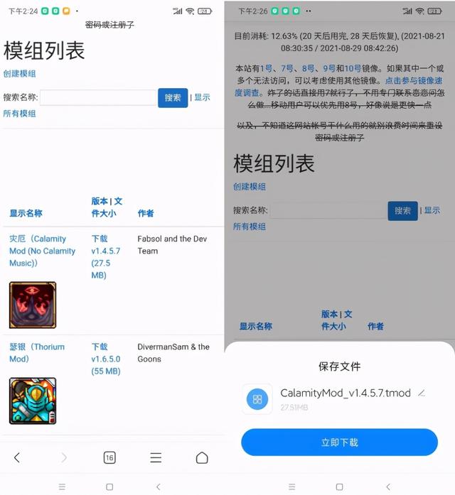 安装好tModLoader后在网站里下载MOD文件保存到手机中,打开tModLoader开始游戏。
