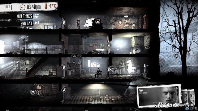 《This war of mine》中文名这是我的战争,这是一款2D横板战争题材的策略手游,与传统常见战争类型游戏不同,玩家并不是需要操控主角如神降临在战争中拯救世界。玩家需要在残酷的战争世界中扮演一个普通的民众,在战火下自救,给大家展现了一个家庭在绝望与残酷的时代里如何保留那仅存的一丝人性。