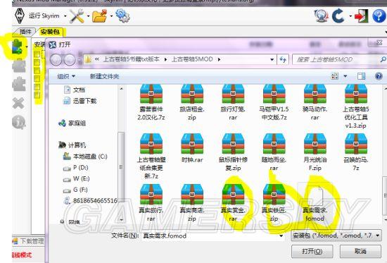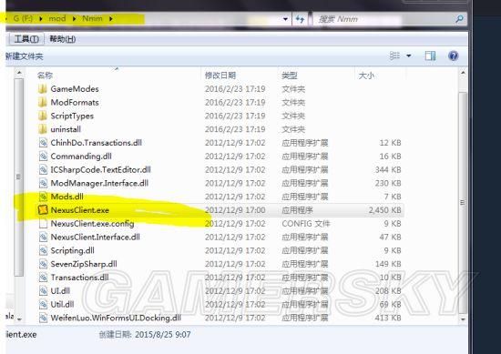 4.模组加载软件Nexus mod manager(NMM下载地址:)和ModOrganizer(MO下载地址:),方便加载模组和卸载,比直接覆盖好很多,必备。均适合新手使用。用最适合使用的NMM来介绍,使用简单,中英、登陆离线、各版本均可。使用方法十分简单,请任意解压到一个文件夹中,然后运行NexusClient.exe,开始会选择游戏,其他游戏全部打叉,上古卷轴5打勾即可选择。然后会选择模组安装储存位置,随意文件夹即可。登陆版注册账号即可,可从N网下载模组,而且可以更新。离线版跟方便新手,固定使用模组,不容易出问题。登陆后即可显示安装的模组文件。(MO使用也差不多,可上网查看。)