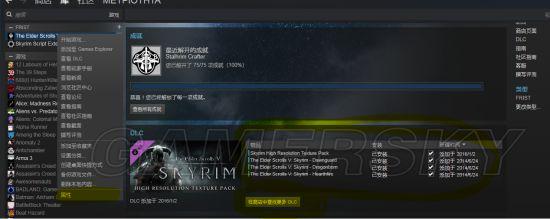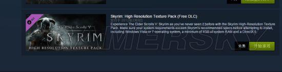 3.可选(最方便安装的游戏模组) 其实就是自带的dlc,游戏库中点击查找dlc,有一个Skyrim: High Resolution Texture Pack (Free DLC),下载即可。高清材质dlc。