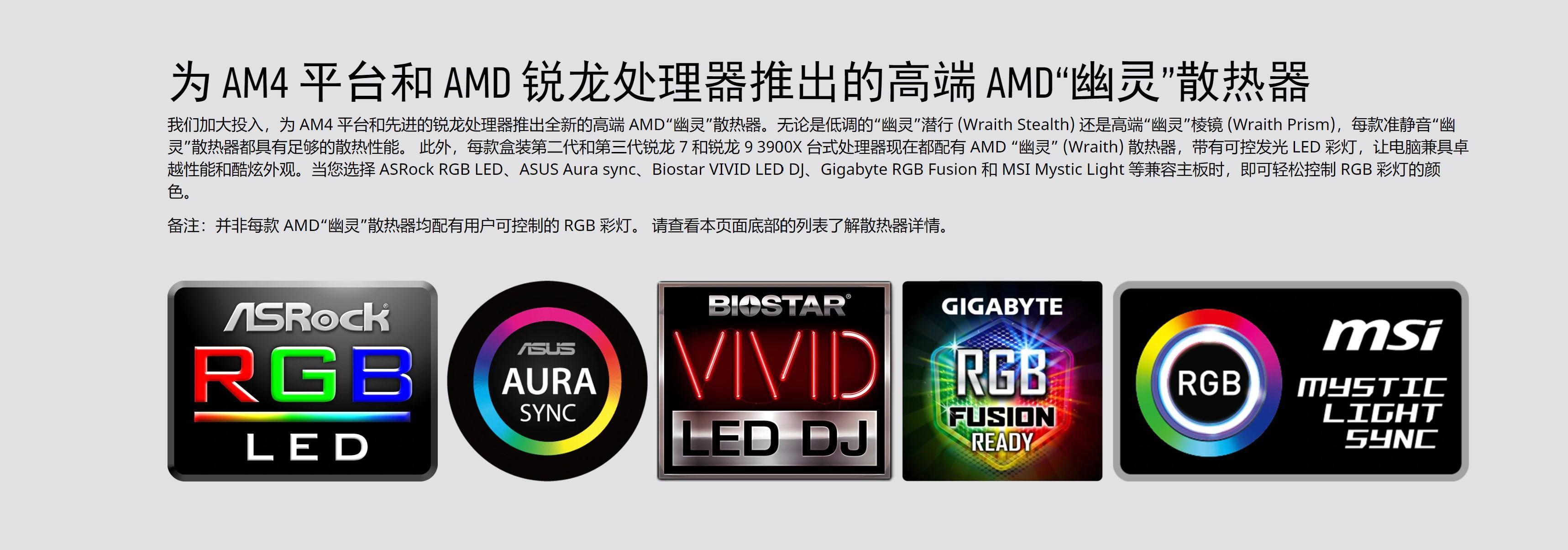 首先是AMD官网介绍的,支持的各家主板灯效,支持华硕、微星、技嘉、华擎、甚至比较小众的映泰。