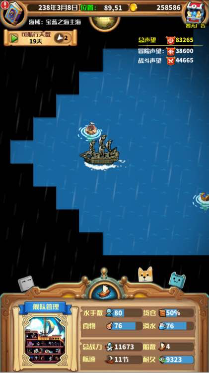 Q版的航海题材手游,玩家需要到处占领岛屿,然后获取材料再升级船。