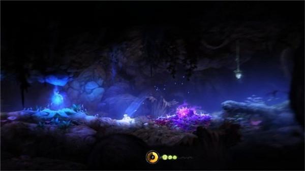 场景:沉没林地、精灵洞穴收集:2个生命核心(部分暂缺)、3个能量核心(部分暂缺)1、奥日醒来后发现周围的花儿都发出光芒点亮了整片的森林,而此时游戏会进行第一次的自动保存。往左侧走去,穿过一个树洞可以发现左侧有一个坑,在坑上方有两个悬吊的树枝,先不上去,因为需要拿到精灵之火才能够继续前进,选择是先跳入卡在坑口的长长树枝上,沿着树枝往左端走去,会发现第一个能力核心。注:因为能力核心在菜单中没有标明其总量,所以在本文之中,它不会算作是收集品之一,但小编会用对每一个能力核心都会用颜色来加以区分。