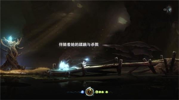 10、返回到坑内第二段的木桥,使用精灵之火击破左侧的尖刺球,在左侧会遇到另一个坑,坑的墙壁上有尖刺,小心躲避,利用墙体之间的弹跳落到坑底,使用精灵之火摧毁挡路的尖刺球。落到底层一直往左侧推进,奥日会看见昔日因纳鲁的离开而消沉的自己的影像浮现在眼前,继续前行会发现一个圣地,在这儿可以获得飞檐走壁(此时就可以回去拿取第五步的能量核心)。剧情:“还有那些…仍紧握希望。伴随着她(希望)的蹂躏与杀戮”。