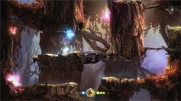 奥日和赛安永远忘不了精灵之树的光芒,我们之所以留一口气活在这世间,都是为了眼前这棵树。多年以前,精灵之树曾大声叫说要找到奥日。但那时赛安他们遭受敌人的袭击和追杀,而身负重伤。到如今,就剩下这些先祖之树了。靠近一点,感受一下它的光芒。这个精灵就藏在这枯树里面。使用飞檐走壁跳上先祖之树左侧的岩壁上,可以获得一个能量核心(3/15)。
