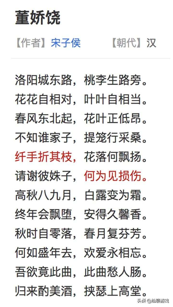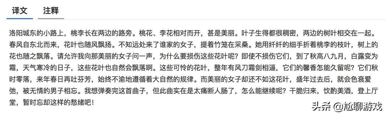 全诗表达了女子封建社会下多是红颜薄命的哀叹,与游戏中貂蝉背景故事遥相呼应。