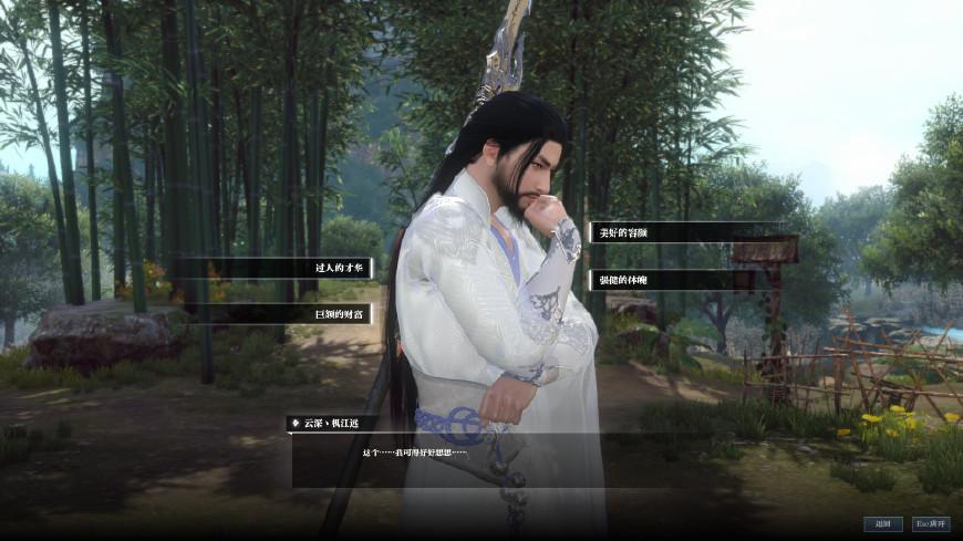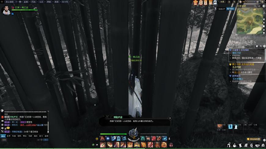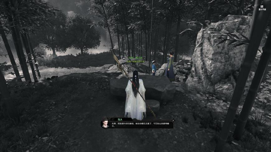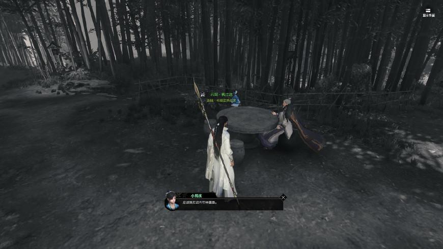 去二楼,坐标(159,197)可以找到白纸,笔墨。这时候又会得到提示“那时候我喜欢在幽静的林间作画”,所以我们去找竹林啦。