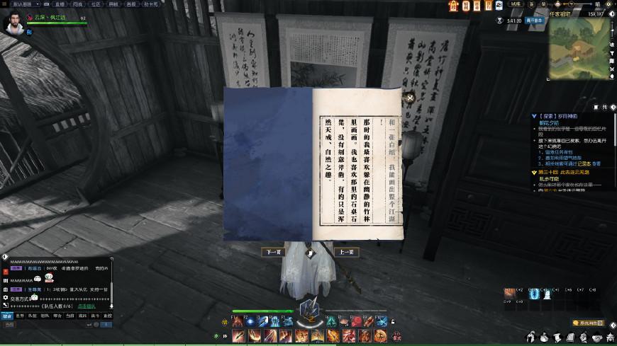 大家可以根据坐标远近来选择最佳的拾取路线,拾取所有碎片后,在任务背包里右键点击进行修补,得到修补后的画卷和新提示:“画卷可以弥补,但心里的裂痕不能,我还是喜欢在石桌……”这意思我们得回到竹林的石桌旁。