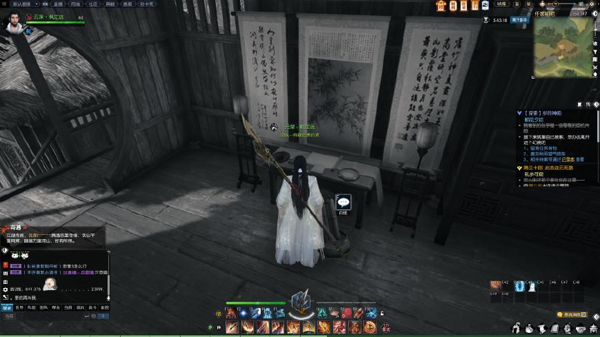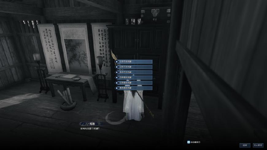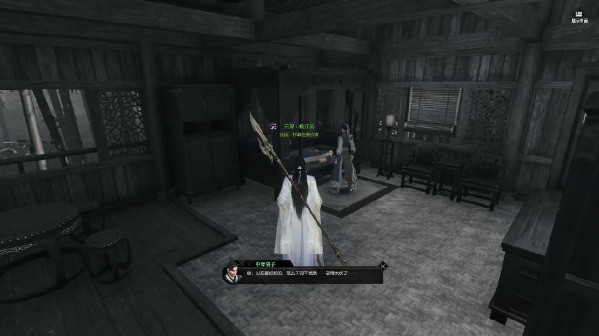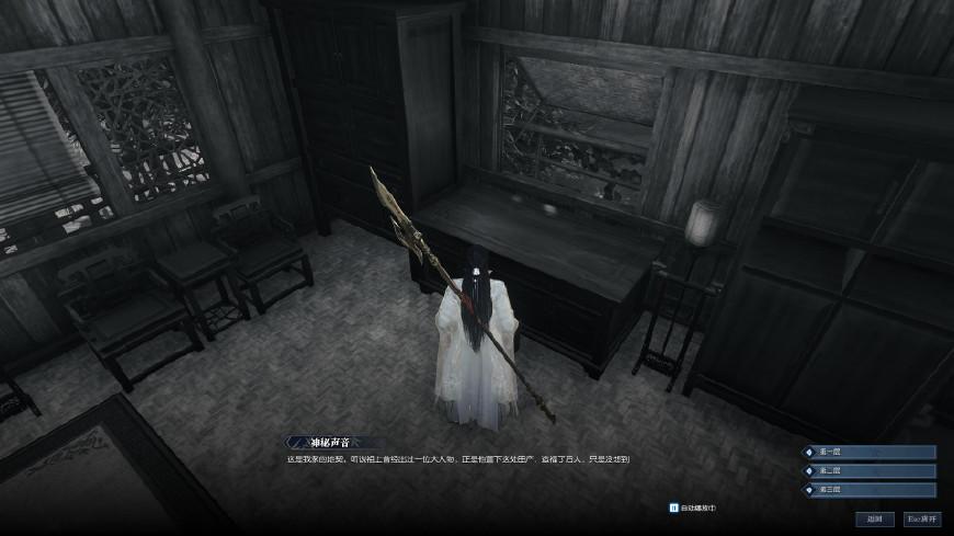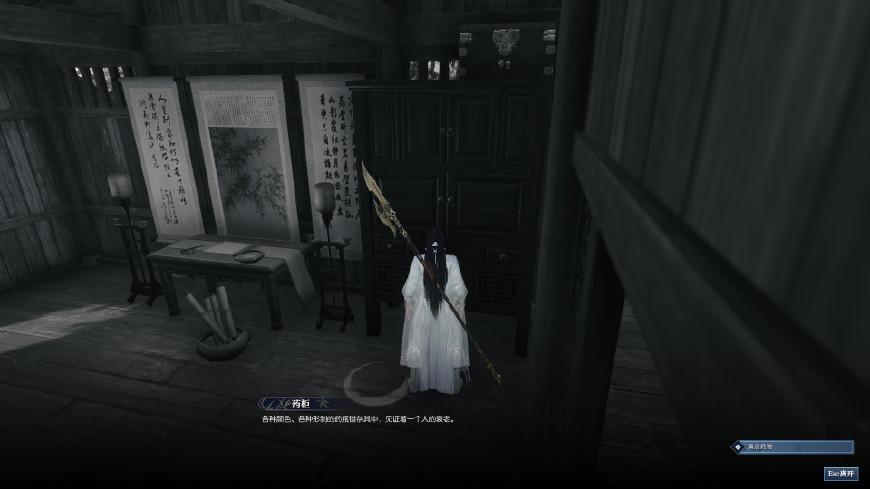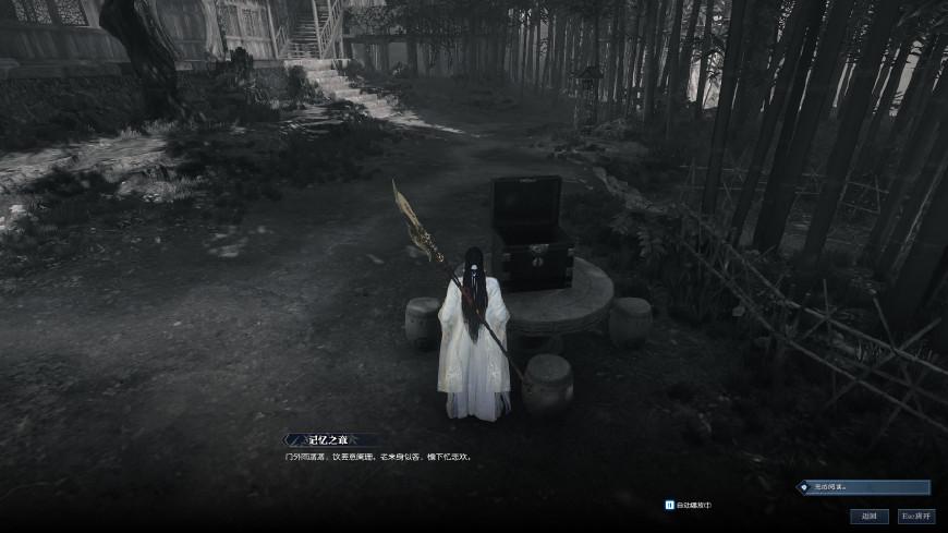 来到坐标(130,155),就可以看到木剑图标自动跳出来了,点F使用即可。这个时候出现一段记忆碎片,看完后就是自由探索阶段,要离开这个记忆场景,需要找到足够的线索才可以。任务又提示我们“给我一副笔墨纸砚,我就可以画出整个江湖”,这就是让我们去书房啊。