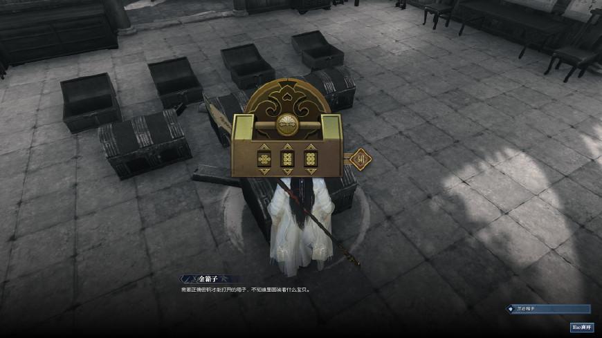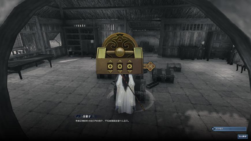 第一种方式,金箱子密码为“866”,为什么是这个密码呢?少年成长的一路上,通过回忆出现了一些有特殊意义的数字。第一阶段被撕毁的画作是8个碎片,第二阶段父亲让打扫的落叶是6堆,然后是第二阶段少年18岁闯江湖前,去避难所练习的木桩是6个,所以借此得到密码是“866”。这个解锁必须直接开启金箱子。如果你要从木箱子开启,方式就全变了。