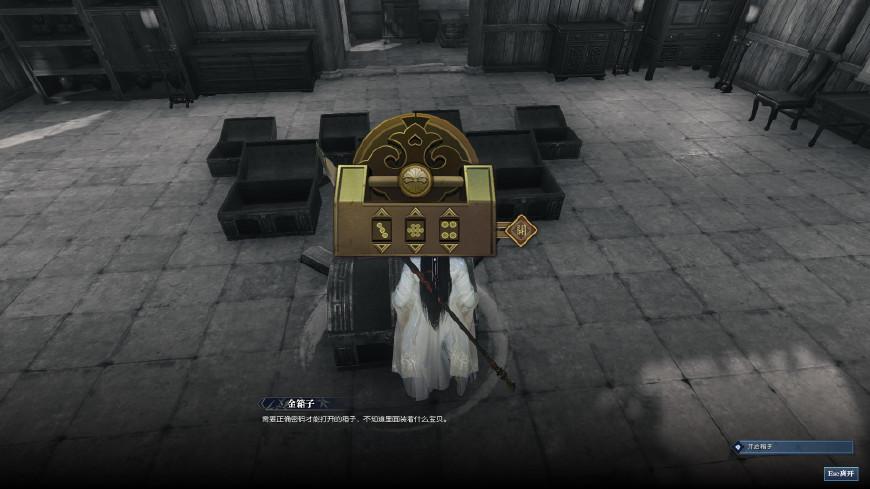 再次进入回忆,根据张老头的提示“希望通过自己努力在家里堆满金银财宝”来到堂屋大厅,看到一地的宝箱。箱子分为金箱子、银箱子、木头箱子,都需要密码才可以开启。这里要注意一个细节,有可能是任务会随即改变密码,有可能是两种解开方式,大家都可以尝试。