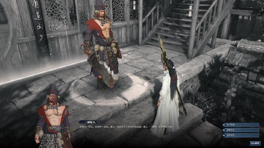 去厨房的时候会发现前后门都进不去了,有一个神秘人把守。这是策划开的玩笑,你需要做一个选择,30秒里打败他,或者是委曲求全。枫叔试了,肯定打不过,最终委曲求全还给磕了头才放进去,纯粹是策划满满恶意的整蛊,这个NPC叫“现实”,意思就是玩游戏要认清现实,那才是你爸爸。