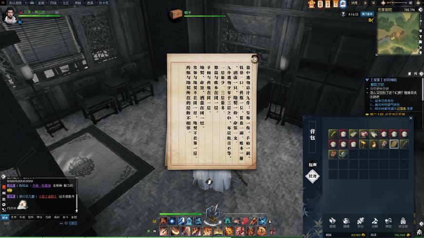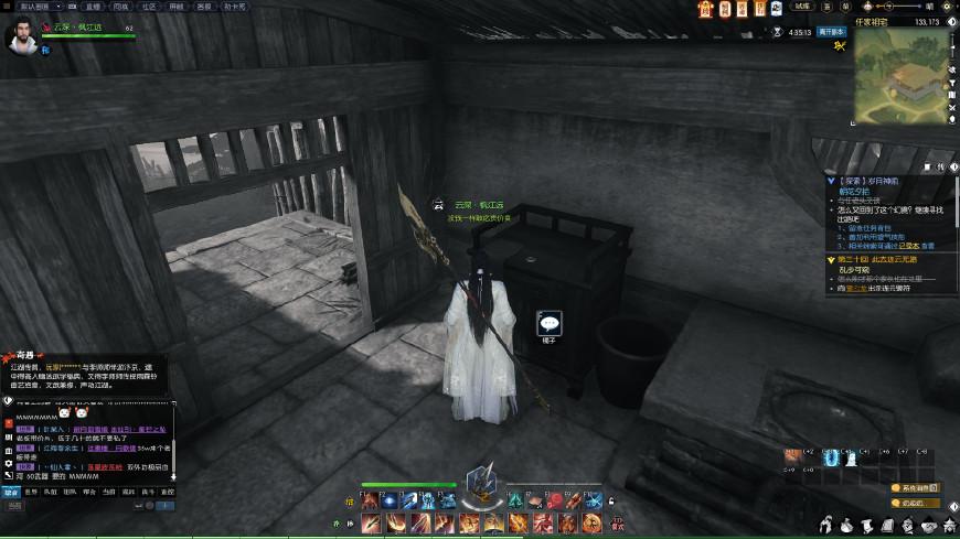 来到屋子里的(144,167),对着上图位置的箱子使用风水技能,即可获得“一把生锈的剑”,拾取武器到院子里交给任老头即可。然后我们进入该任务的第三阶段。