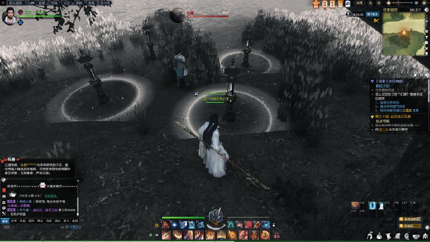 根据提示有水声,有石头撞击声的提示,来到坐标(241,232)的位置,然后如上图对身边坐标(242,227)处使用望气下的风水技能,发现“破损的竹笛”。