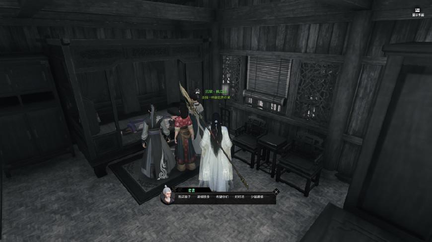 领取任务后随着自动寻路找到一个老头,和他喝酒后来到他的家,这里有一段回忆剧情,然后系统会让你找小朋友的木剑。