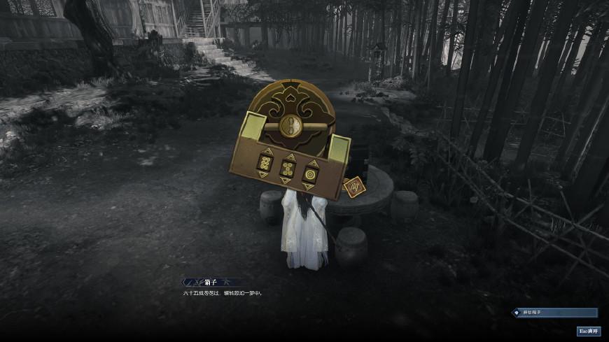 再次进入回忆后,石台上多了一个箱子。按F查看提示你“六十五载,转眼一梦”,因为最近对《逆水寒》数字的敏感,我一下就猜到密码是“651”啦。