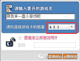 双击记忆大考验,可以开设房间(可以选择游戏卡的数量4X3亦或者其他数量张数的模式):
