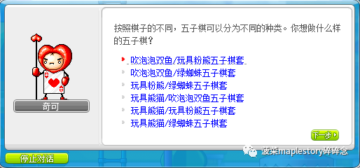 玩具城部分怪物也会掉落棋子,可以通过玩具城NPC奇可查看都有哪些怪物棋子。玩具城怪物掉落的棋子只能通过玩具城NPC合成,金银岛的怪物只能通过射手村NPC合成: