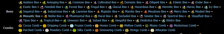 而聊到养蜂、养蝴蝶、杂交树,个人体会上是所有接触到的mod里最难的游戏内容,往往工业2-星系的流程都跑完了,蜜蜂的最终蜜蜂还没杂交出来。