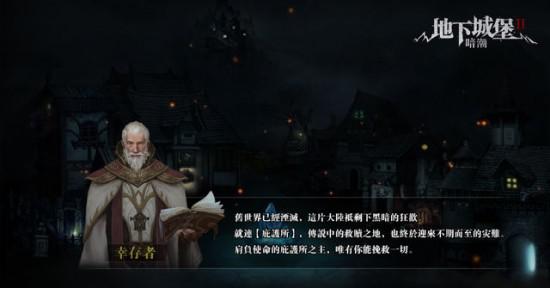 在游戏开始的序章,城主在经历了一系列磨难后,终于回到庇护所。这里仅存的一名老人迎接着城主的回归。这一片废墟的庇护之地,城主需要重新建立家园、军队与希望。在经历一系列指引,庄园与酒馆建立完成,终于可以雇佣冒险者外出探险。