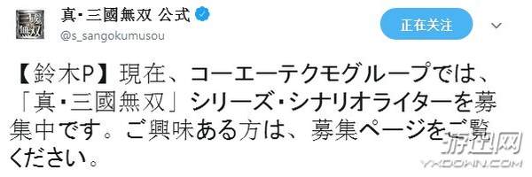 招聘信息中并没有写是为了《真三国无双8》寻找剧本作者,而是为《真三国无双》系列,工作内容包括角色台词和剧情撰写。